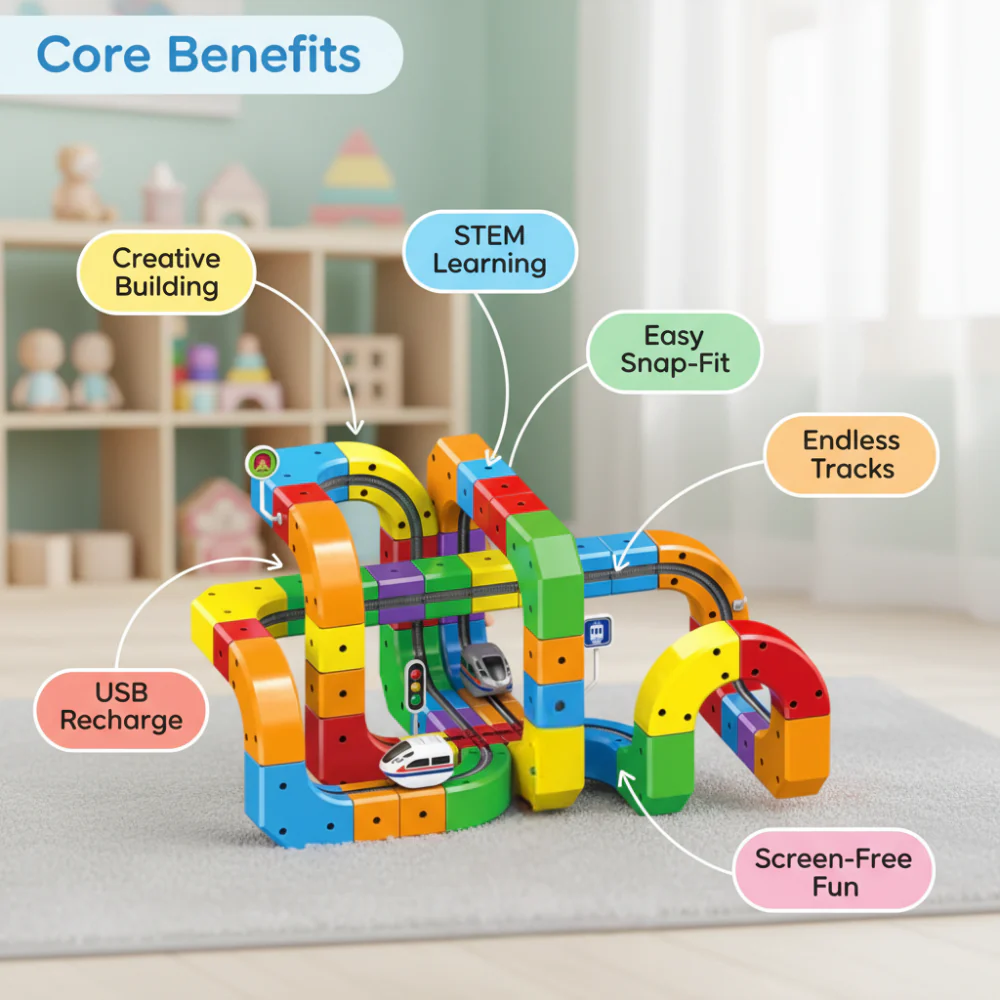 This DIY railway model encourages problem-solving, logical thinking, and hands-on creativity, making it a perfect gift for curious kids who love building and experimenting.